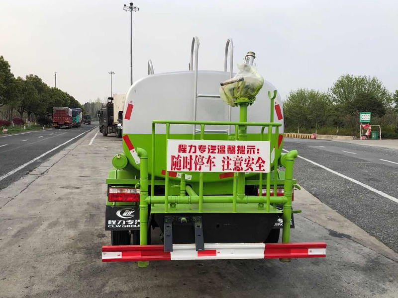 CLW5070GSSD6型洒水车是程力专用汽车股份有限公司研制开发的一款新型洒水车。该车采用东风二类底盘改装,加装专用作业装置及控制系统改装而成。洒水系统配置了前对冲冲洗装置(或中对冲冲洗装置)、后洒水装置、侧绿化浇灌装置以及高射程水炮。