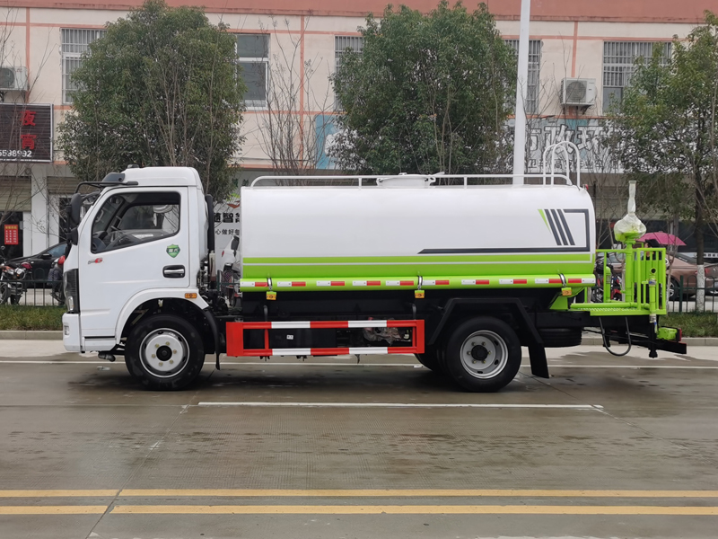 洒水车专用部分由罐体、水泵、球阀、输水管道、洒水装置等部件组成。水泵、取力箱、球阀均为国家定型产品,具有性能良好,工作可靠、压力高、流量大、油耗低等特点。
