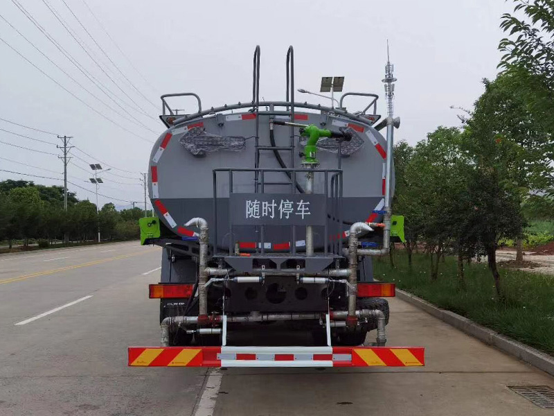 洒水车罐体结构为方圆形,采用优质碳钢板制成,国际先进的机器焊接,对接焊工业。罐体水仓分为2或3室,仓内隔板下端有通孔,具有防波防荡作用。