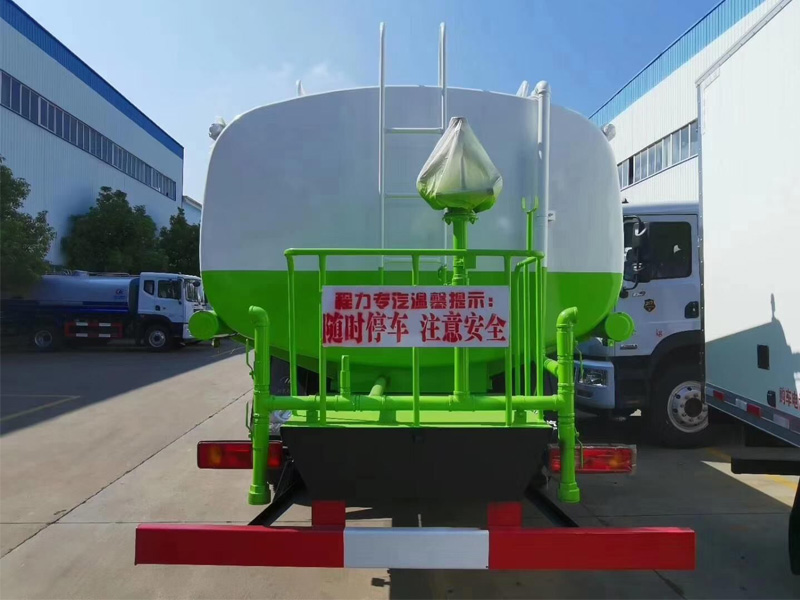 洒水车罐体结构为方圆形,采用优质碳钢板制成,国际先进的机器焊接,对接焊工业。罐体水仓分为2或3室,仓内隔板下端有通孔,具有防波防荡作用。