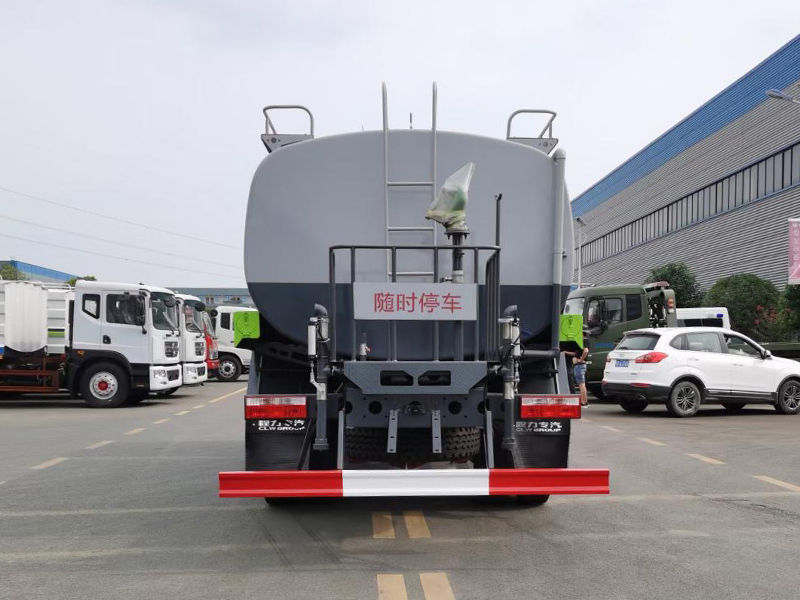 洒水车罐体结构为方圆形,采用优质碳钢板制成,国际先进的机器焊接,对接焊工业。罐体水仓分为2或3室,仓内隔板下端有通孔,具有防波防荡作用。