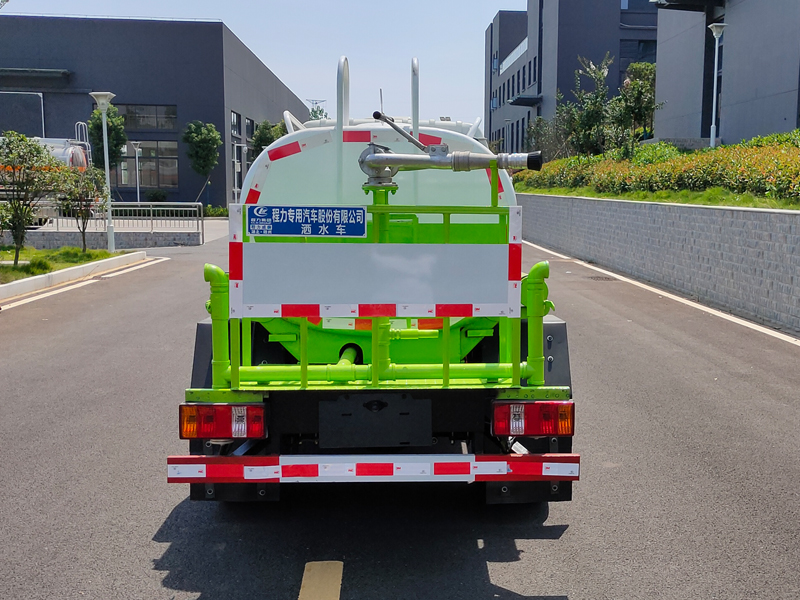 CLW5041GSS6ZS型洒水车是程力专用汽车股份有限公司研制开发的一款新型抑尘车。该车采用福田二类底盘改装,加装专用作业装置及控制系统改装而成。洒水系统配置了前对冲冲洗装置(或中对冲冲洗装置)、后洒水装置、侧绿化浇灌装置以及高射程水炮。