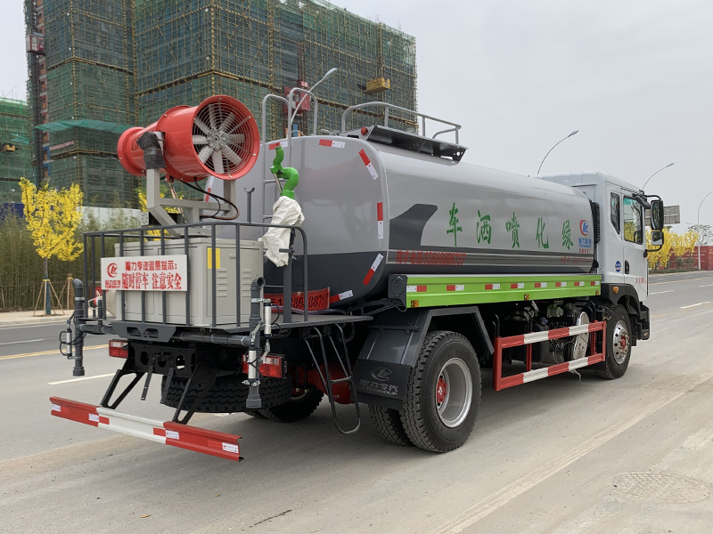 绿化喷洒车专用部分由罐体、水泵、球阀、输水管道、洒水装置、雾炮系统等部件组成。水泵、取力箱、球阀、雾炮均为国家定型产品,具有性能良好,工作可靠、压力高、流量大、油耗低等特点。
