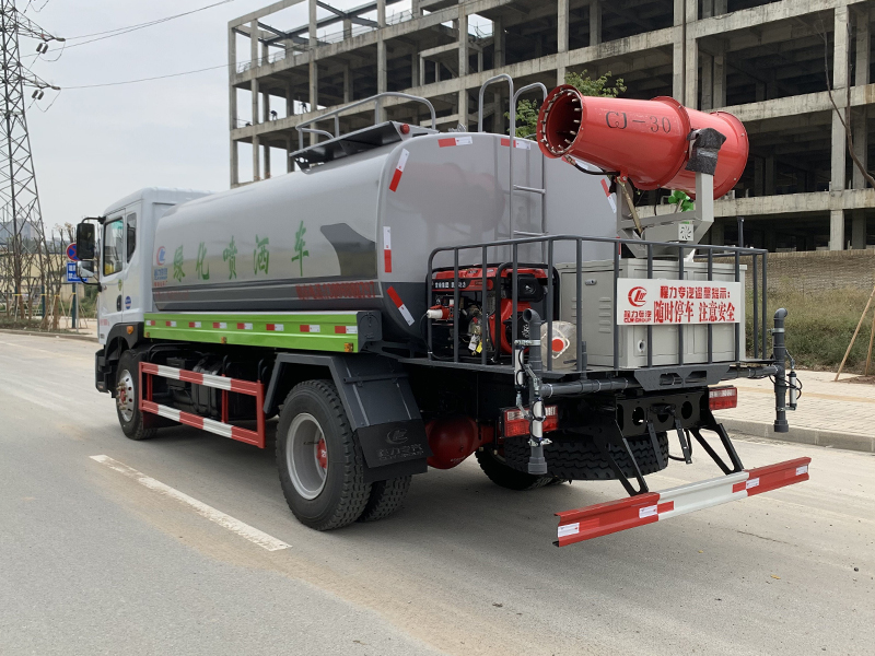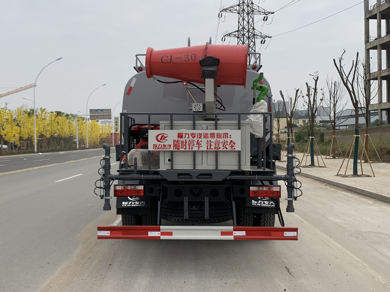 CLW5182GPSD6型绿化喷洒车是程力专用汽车股份有限公司研制开发的一款新型绿化喷洒水车。该车采用东风二类底盘改装,加装专用作业装置及控制系统改装而成。专用作业装置包括雾炮系统和低压水路系统,其中雾炮系统包括柴油发电机组,水泵,雾炮等。洒水系统配置了前对冲冲洗装置(或中对冲冲洗装置)、后洒水装置、侧绿化浇灌装置以及高射程水炮。