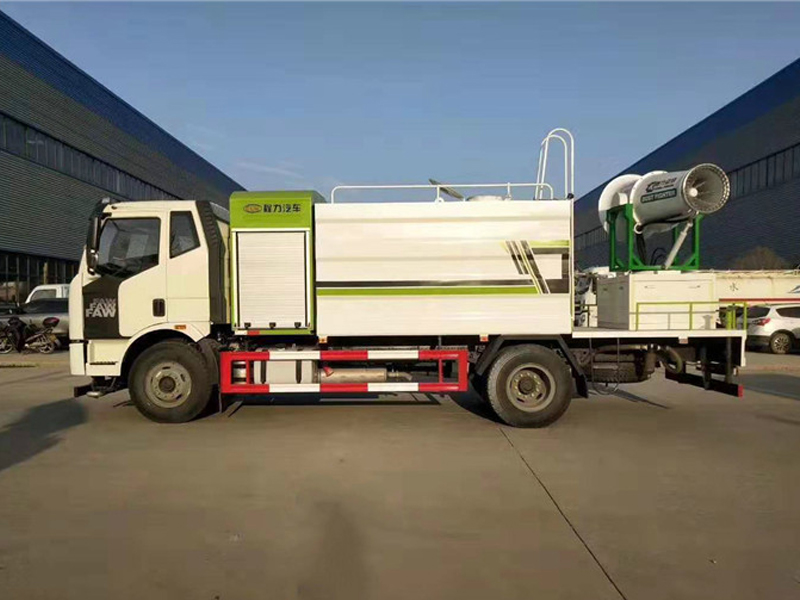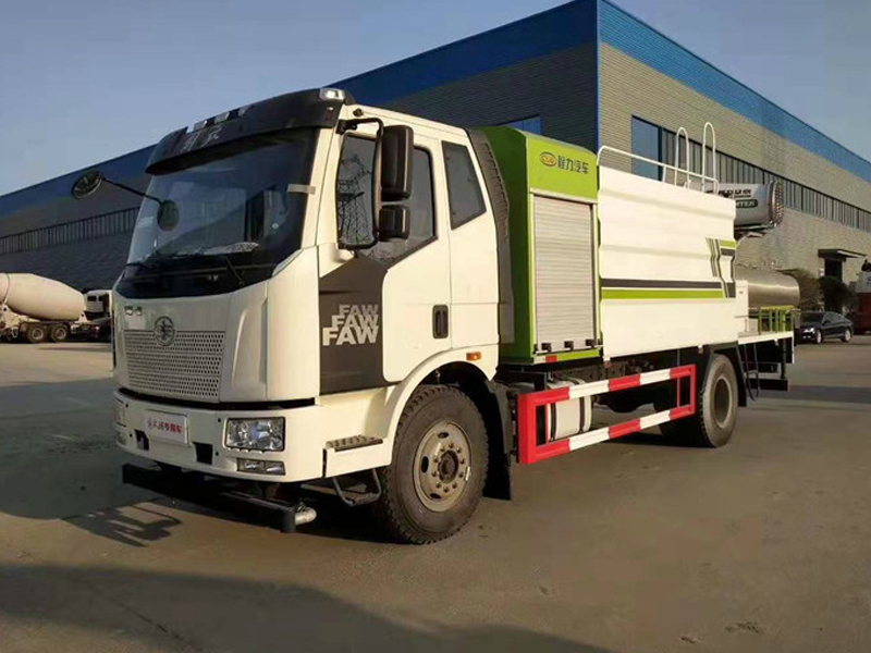 CLW5180TDYC6型多功能抑尘车是程力专用汽车股份有限公司研制开发的一款新型抑尘车。该车采用一汽集团二类底盘改装,加装专用作业装置及控制系统改装而成。专用作业装置包括雾炮系统和低压水路系统,其中雾炮系统包括柴油发电机组,水泵,雾炮等。洒水系统配置了前对冲冲洗装置(或中对冲冲洗装置)、后洒水装置、侧绿化浇灌装置以及高射程水炮。