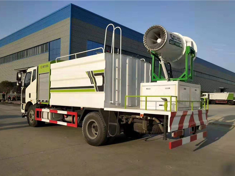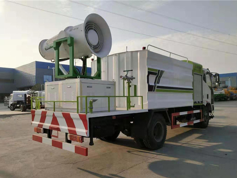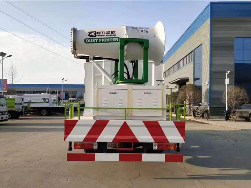 抑尘车车专用部分由罐体、水泵、球阀、输水管道、洒水装置、雾炮系统等部件组成。水泵、取力箱、球阀、雾炮均为国家定型产品,具有性能良好,工作可靠、压力高、流量大、油耗低等特点。