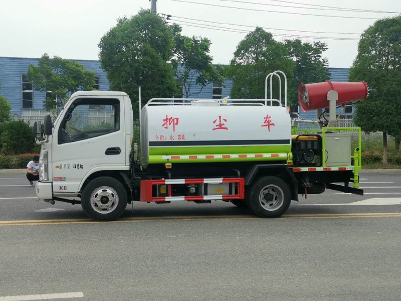 抑尘车专用部分由罐体、水泵、球阀、输水管道、洒水装置、雾炮系统等部件组成。水泵、取力箱、球阀、雾炮均为国家定型产品,具有性能良好,工作可靠、压力高、流量大、油耗低等特点。