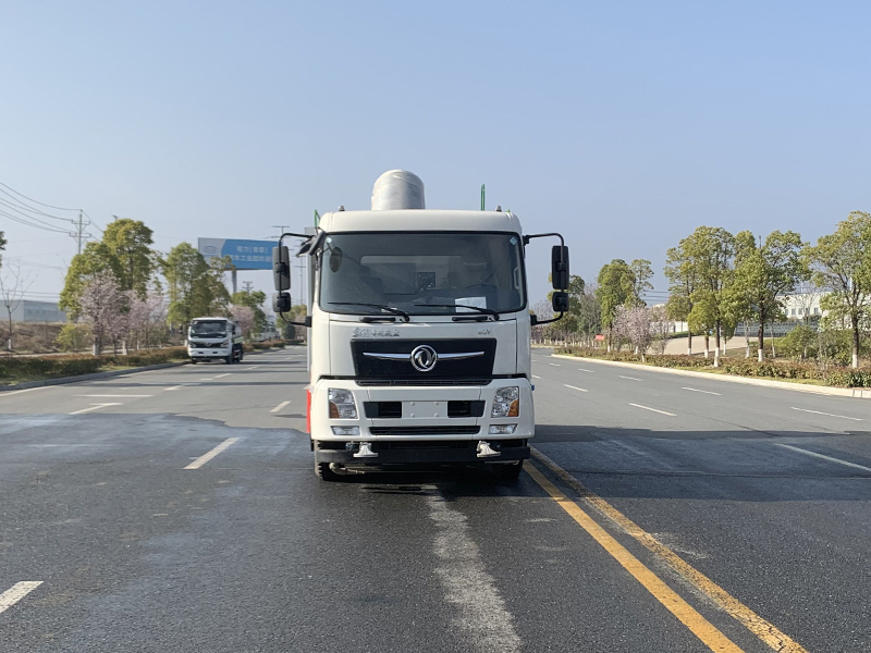 后洒水装置:后洒水装置采用手动球阀分别控制后洒水嘴的开启与关闭,同时开启两个后洒水嘴时,洒水宽度不小于14m。