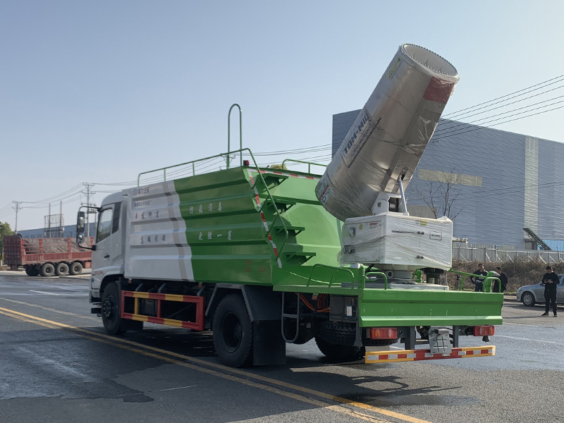 抑尘车车专用部分由罐体、水泵、球阀、输水管道、洒水装置、雾炮系统等部件组成。水泵、取力箱、球阀、雾炮均为国家定型产品,具有性能良好,工作可靠、压力高、流量大、油耗低等特点。