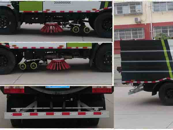 1)该车集扫路车、洒水车和高压清洗车功能于一体,具备路面清扫、路面洗刷、高压清洗、低压冲洗、路缘石洗刷、垃圾收集、污水回收、喷雾降尘和道路隔离墙清洗、小广告清洗等多种作业功能。
