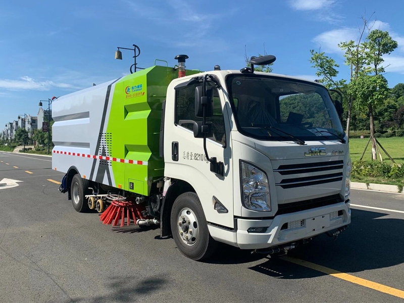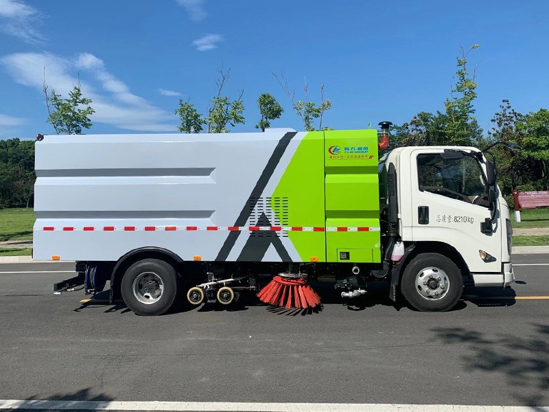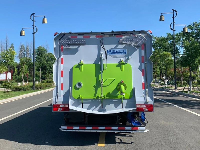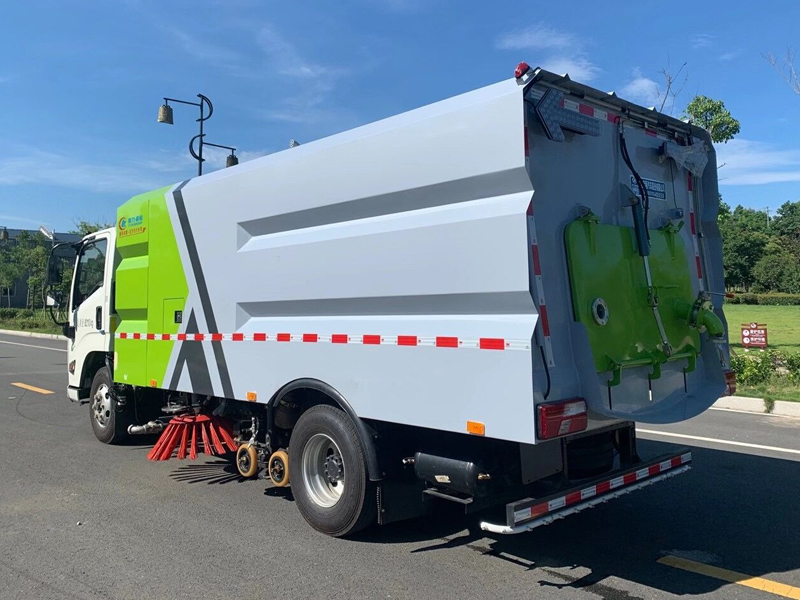 1)该车集扫路车、洒水车和高压清洗车功能于一体,具备路面清扫、路面洗刷、高压清洗、低压冲洗、路缘石洗刷、垃圾收集、污水回收、喷雾降尘和道路隔离墙清洗、小广告清洗等多种作业功能。