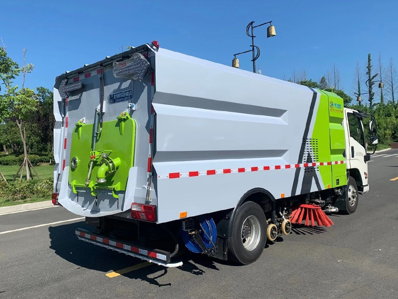 低压冲洗:利用离心水泵的低压力、大流量对路面进行冲洗作业,作洒水车用。